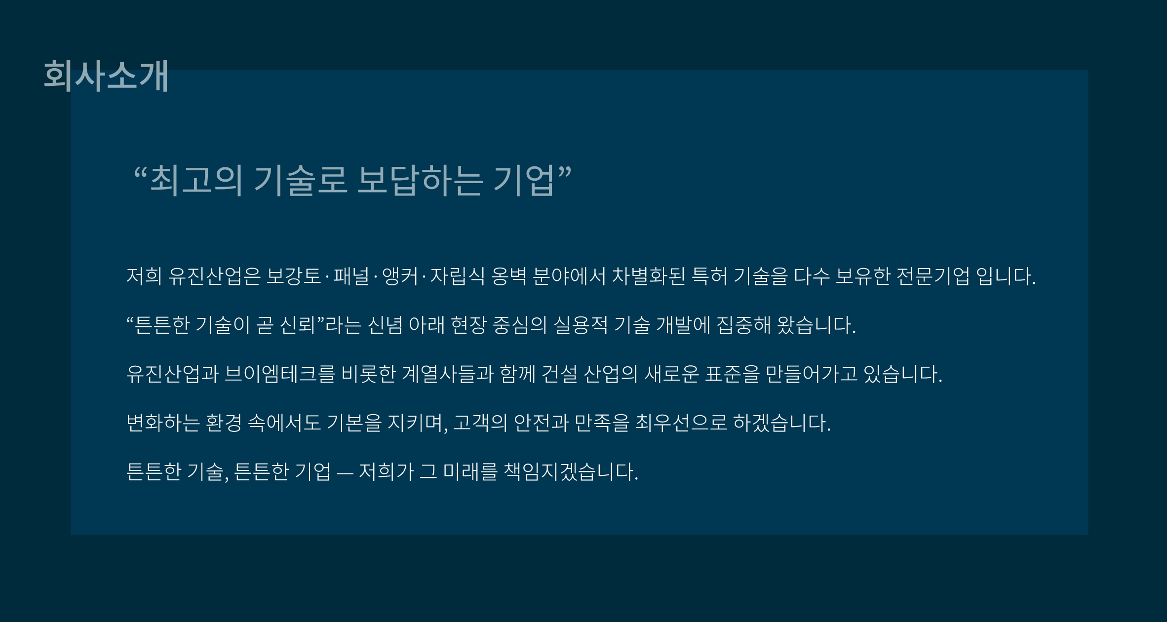 튼튼한 기술, 튼튼한 기업 - 저희가 그 미래를 책임지겠습니다.